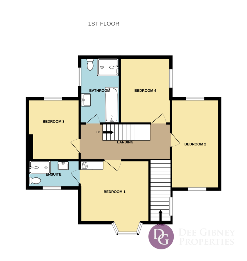 4 double bedrooms one with en-suite bathroom.